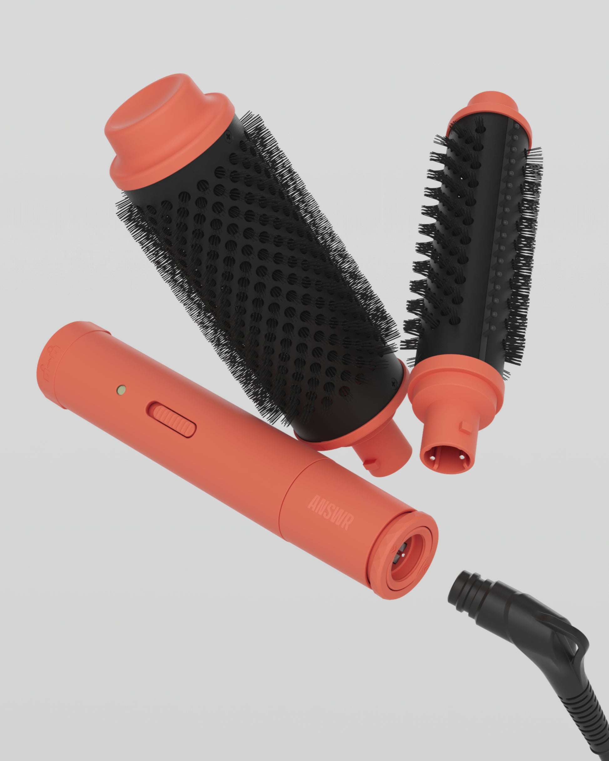 The ANSWR Volumewave Heated Brush is the ultimate all-in-one styling tool to achieve salon-like blowouts, curls, and volume effortlessly at home. Combining a blow dryer and round brush in one, it features two interchangeable ceramic barrels—45mm for full-bodied blowouts and 30mm for precise curls and waves.