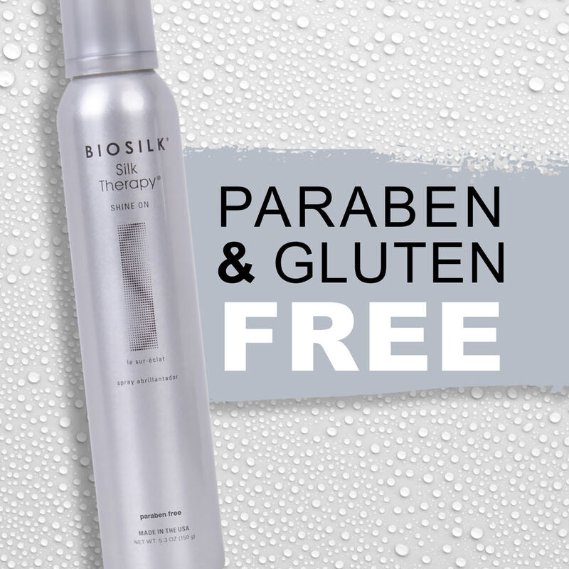 WEIGHTLESS FINISHING SPRAY: BioSilk Silk Therapy Shine On is weightless finishing spray that controls frizz and provides hair with brilliant shine.